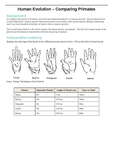 Human Evolution Comparing Primates Answer Pdf